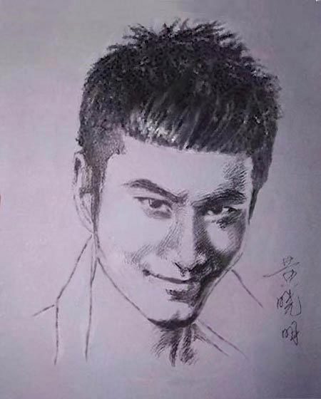 35岁黑圆珠笔素描:黄晓明