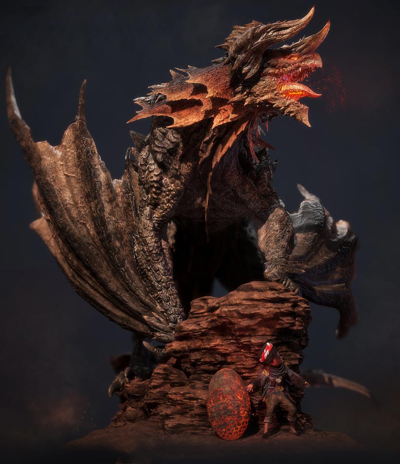 使用不同Alpha制作龙的高模,可使用ZProject笔刷来投影拼接各分块。